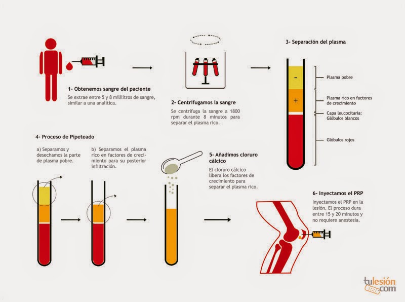 En esta infografía puedes ver de manera más sencilla cómo funciona el proceso. En este caso está aplicado a una rodilla, tratamiento que ha sido usado en lesiones de deportistas de élite, como Rafa Nadal.